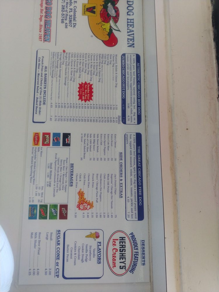 Hot Dog Heaven in Orlando is a must-visit for hot dog enthusiasts seeking authentic Chicago-style dogs. Located at 5355 E Colonial Dr, this hotspot offers a variety of mouth-watering options ranging from classic Chicago dogs to jumbo hot dogs and specialty sausages. The menu also includes a range of side orders like fries, cheese fries, and chili & cheese fries. Beverages such as Pepsi, Dr. Pepper, and fresh-squeezed lemonade are available to complement your meal.